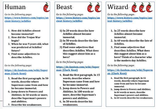 Here is another example that I used when I had students making comparison between achilles and superman (Year 8s, we were exploring ancient mythology):