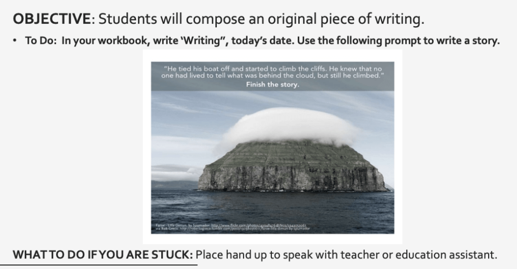 If you feel comfortable and students have the capacity to work independently, silent writing might be a great activity.