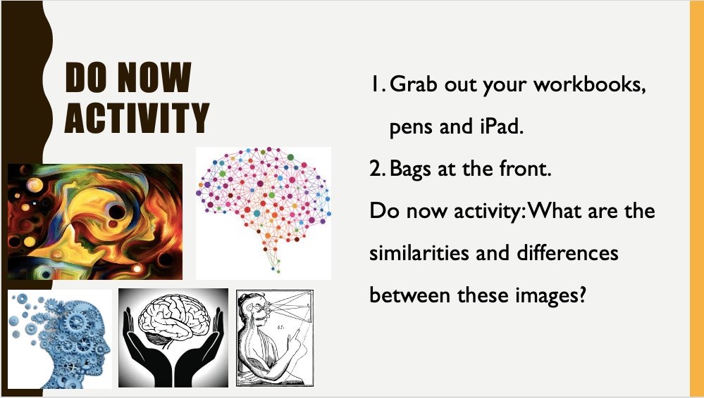 Here is a hook that I use for an Inside Out film study. The lesson was focused on characterisation, but I want to get them familiar with the idea that our brains are complex and that we process the world in a unique way.