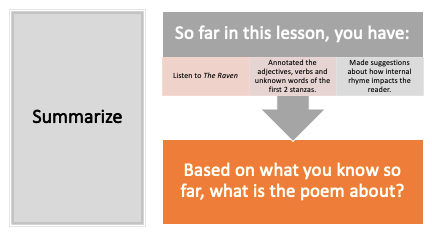 In this section, I have outlined how to teach The Raven – or least the first two stanzas. The lesson is heavily scaffolded and I have provided context for how the lesson is structured and chunked to assist student learning.