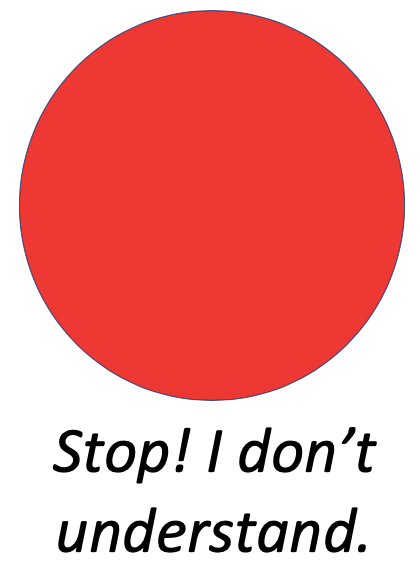 Students indicate with their fingers their understanding of the content. A fist means that they need to have the content repeated to them. 5 digits means that they can move on independently.