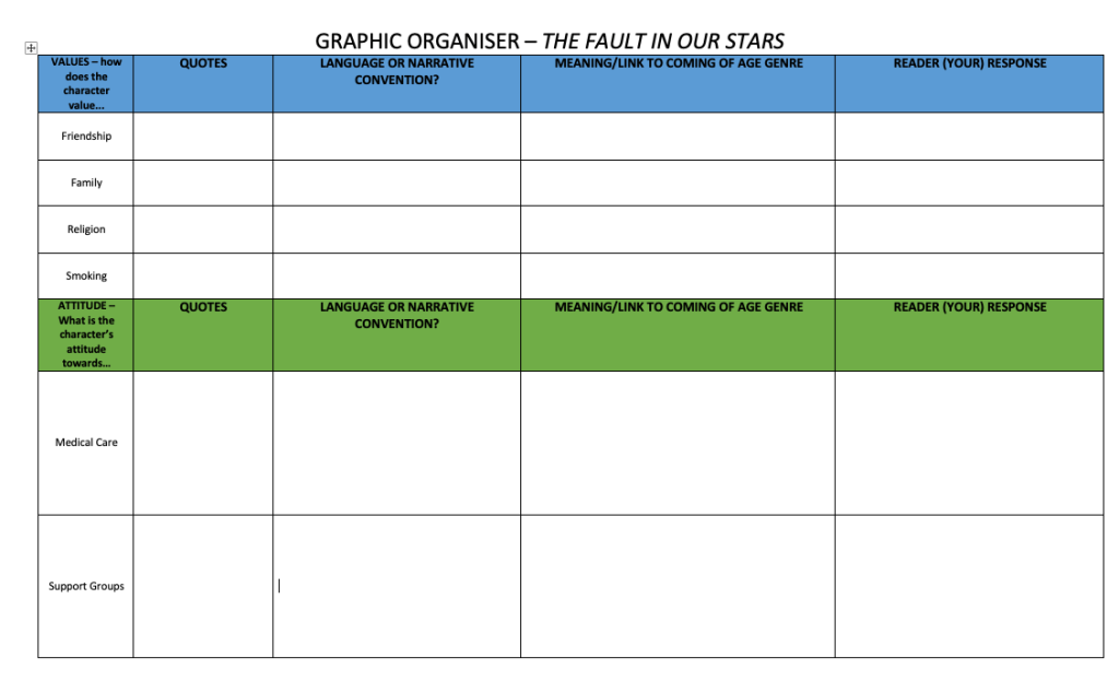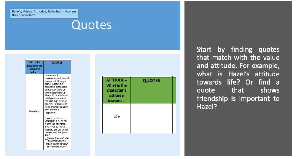 Before jumping into The Fault in Our Stars, you need to carefully unpack the terminology around values and attitudes. At its core, students need to understand that our beliefs have a butterfly effect on our behaviours in society. Jump over to my other post about values and attitudes to help explain to students.