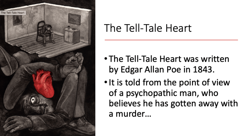 - Introduced students to an abridged version of The Tell Tale Heart.