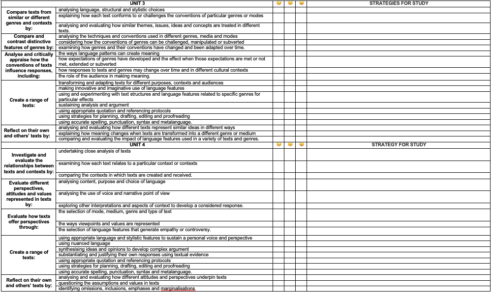 - Self-assess their confidence with each syllabus points. Tick the face that reflects how they feel about their understanding of the syllabus point.