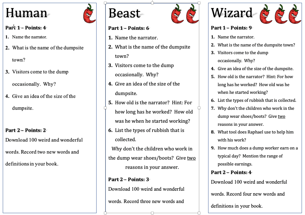 Here is an example choice board I created for a Year 7 cohort focused on the novel Trash, by Andy Mulligan.